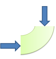Figure 7. Unbalanced force loading of the pipe cross-section at the pipe bend. This is the most common source of pressure for vibration coupling, as pipe bends are frequent and involve the largest pipe cross section area and as the reaction force F = Pressure·CrossSectionArea. (Click on figure to expand)